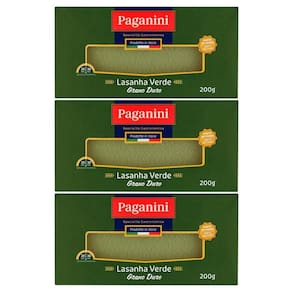 Kit 3x: massa para lasanha verde paganini 200g A massa para lasanha verde paganini é elaborada com sêmola de grano duro e espinafre, o produto alia a tradição da marca italiana com a qualidade do grano duro.