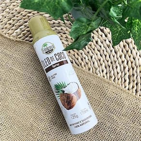 Ingredientes: Óleo vegetal de coco-da-baia Cocos Nucifera L. extraído a frio e gás Propelente. NÃO CONTÉM GLÚTEN.