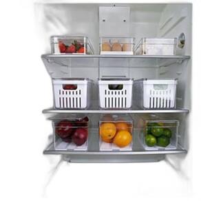 F6234 Conteúdo da Embalagem: 01 Und. De Organizador De Geladeira 5 Litros 02 und. De de Organizador De Geladeira 2,8 Litros Ventilação e Humidade controlada Organização e otimização de espaço Com Bandeja de Drenagem Removível organizadores De Geladeira De Drenagem Com Respiradouro caixa de Armazenamento de Frutas Legumes E Vegetais conjunto Linha Clear Fresh OU Com o organizador de geladeira Clear Fresh, você terá organização e irá conservar e manter o frescor de seus alimentos por mais tempo, a tampa com ventilação ajustável mantém o nível de umidade ideal para cada tipo de alimento, mantendo-os frescos por mais tempo. Possui bandeja de drenagem que impede que a umidade acumulada se mantenha no alimento, evitando o murchamento e deterioração precoce. Material Cesto - POLIPROPILENO : Material com alta resistência a impactos e ao calor. Não transfere odor, nem gosto aos alimentos. Atóxico, pode entrar em contato com alimentos. Resistência à água fervente, suportando até 150 C. Material Organizador - POLIENTIRENO : Material translúcido. Ótima transparência e alto brilho. Não transfere odor, nem gosto aos alimentos. Atóxico, pode entrar em contato com alimentos. CUIDADOS : Não utilizar em micro-ondas e lava louças. Lavar com sabão neutro, não utilizar material abrasivo ou álcool na limpeza. Marca: Não Informado Ean: 7794153744418