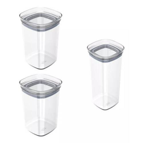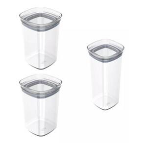 Aspen decor Kit 03 unidades transparente Conteúdo: 02 pc organizador hermético block retangular 1 l Dimensões 10,5 x 10,5 x 16cm 1 pc organizador hermético block retangular 1,5 l Dimensões 10,5 x 10,5 x 23cm