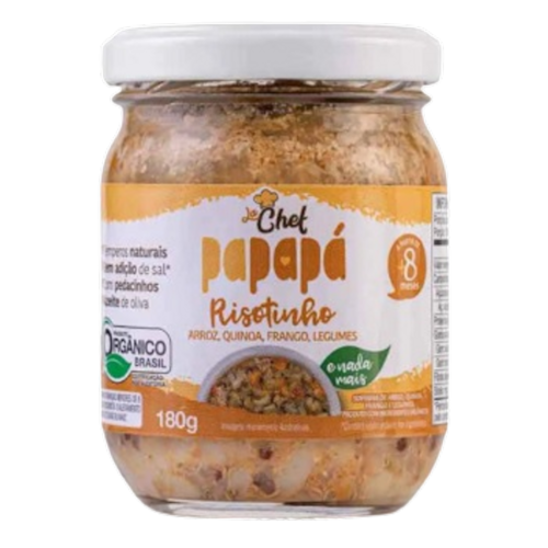 O Risotinho Arroz, Quinoa, Frango e Legumes Orgânico Papapá conta com: arroz, frango, quinoa, legumes e temperos naturais. Não precisa de refrigeração, não possui sal adicionado e nenhum tipo de conservante, corante ou aromatizante.