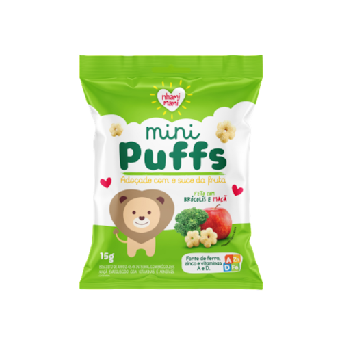 O Snack Infantil Mini Puffs Brócolis e Maçã Nhami Mami é elaborado em conjunto com uma nutricionista infantil. Feito com poucos ingredientes, sem aditivos artificiais, equilibrados para fornecer energia e vitaminas para os pequenos.