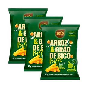 Kit 3x: snack puffs arroz e grão de bico cebola e salsa solo snacks 45g O snack puffs arroz e grão de bico cebola e salsa solo snacks é um snack assado, feito apenas com ingredientes naturais. Vegano, sem glúten, sem lactose, livre de transgênicos e ainda traz 3g de proteína.
