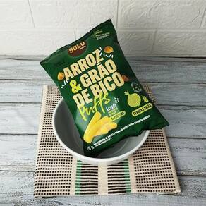O snack puffs arroz e grão de bico cebola e salsa solo snacks vai te surpreender com seu sabor delicioso e o mais importante, saudável perfeito para comer no lanche da tarde.