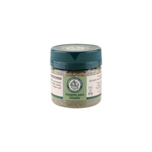O Tempero para Saladas Companhia das Ervas é uma mistura a base de alho, cebola, salsa, manjericão, menta, mostarda e tomilho desidratados, sem adição de sal.