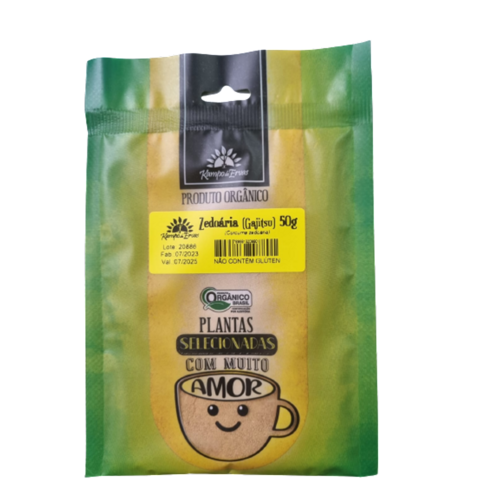 Ingredientes: Zedoária em pó orgânica (Curcuma zedoaria). NÃO CONTÉM GLÚTEN.