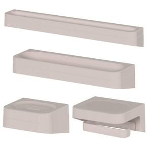 Conteúdo: 1 saboneteira, 1 toalheiro, 1 porta papel higiênico e 1 suporte com ganchos;