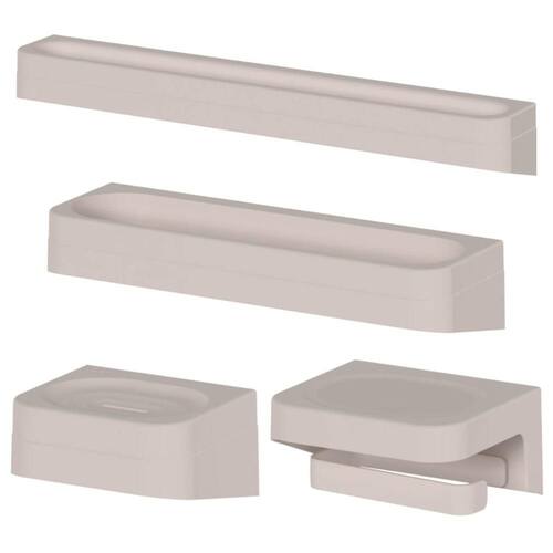 Kit 4 Acessórios Banheiro Saboneteira Toalheiro Papeleira Porta Shampoo Bege Eleve Ou.
