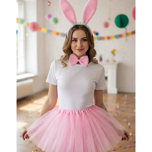 Perfeito para Fantasias, Festas, Cosplay e Eventos Temáticos. Deixe qualquer fantasia muito mais divertida com este kit completo de acessórios de coelhinha, ideal para o Carnaval, Halloween, festas infantis e adultas, eventos escolares, baladas temáticas, raves, sessões de fotos, peças de teatro e cosplay. Um conjunto leve, confortável e super versátil — combina com fantasias simples ou produções mais elaboradas. Componentes do kit: - 1 Tiara de Orelhas de Coelho - 1 Gravata Borboleta - 1 Rabo em Formato de Bola - 1 Saia, conforme variação escolhida, sendo: Saia de 30 cm – para crianças até 3 anos de idade. Saia de 40 cm - tamanho único para vestir os tamanhos de medidas do 30 ao 46.