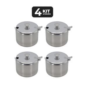 KIT 4 ACUCAREIRO INOX COM COLHER 300ML
