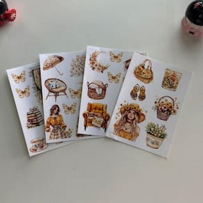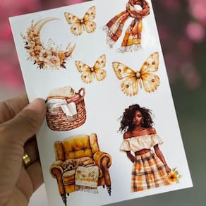 O kit acompanha 4 cartelas de adesivos, cada uma medindo 15 x 10,5 cm, com corte digital preciso e acabamento profissional, garantindo adesivos prontos para uso e de alta qualidade.