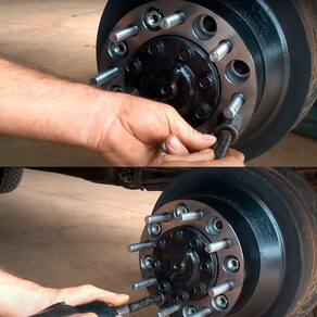 R. São usados as mesmas porcas e parafusos (prisioneiros) do cubo para prendê-lo, e as que o acompanham são usados para prender a roda.