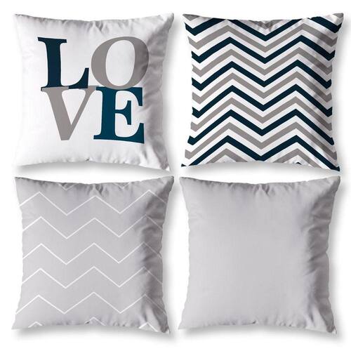 Kit 4 Almofadas Cheias Para Sala 40Cm X 40Cm Chevron Cinza