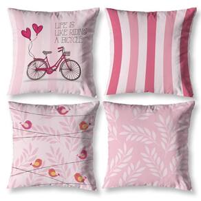 Kit 4 Almofadas Cheias Sala 40Cm X 40Cm Estampadas Bike Rosa