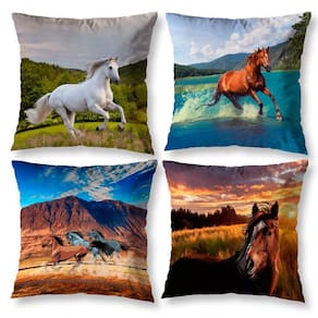 Kit 4 Almofadas Cheias Sala 40Cm X 40Cm Estampadas Cavalo