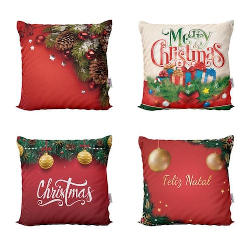 Kit Com 4 Almofadas Decoração De Natal Para Sofá 40X40