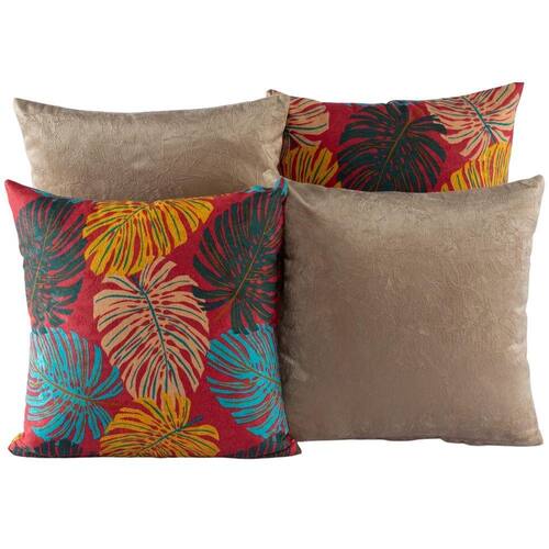 Kit 4 Almofadas Para Sofá Folhas Coloridas Com Cáqui