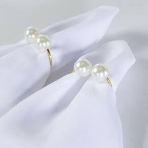 Com design clássico e refinado, este Kit de 4 Anéis para Guardanapos é perfeito para complementar a mesa com um toque festivo e requintado. Cada anel mede 4cm x 3cm e apresenta uma combinação de pérolas duplas que, além de beleza, trazem sofisticação ao ambiente.