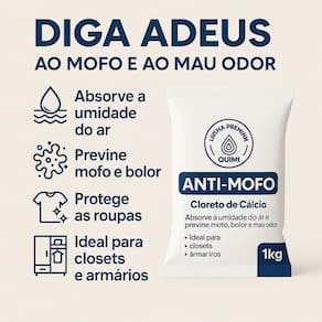 O Anti-Mofo Quimi é a solução prática e eficiente para combater a umidade em ambientes fechados. Sua fórmula com cloreto de cálcio de alta performance atua absorvendo o excesso de umidade do ar, prevenindo a formação de mofo, bolor e os odores indesejáveis causados por fungos.