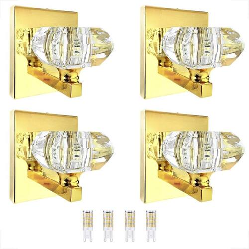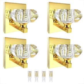 Descrição: - materiais: metal e cristal k9. - dimensões do cristal cxlxa : 7 cm x 7 cm x 4 cm - dimensões da base: Altura: 12 cm Largura: 10 cm Profundidade: 2 cm - profundidade total da arandela: 10 cm - soquete: g9 - tensão: bivolt - tipo de lâmpadas: pode utilizar lâmpada led ou halógena