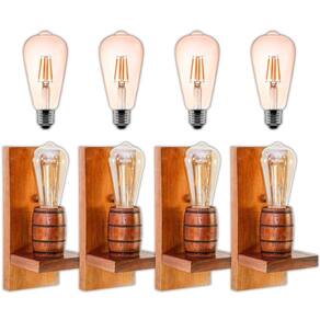 Kit 4 Arandelas Barril Delenha Decor Mogno + Lâmpadas