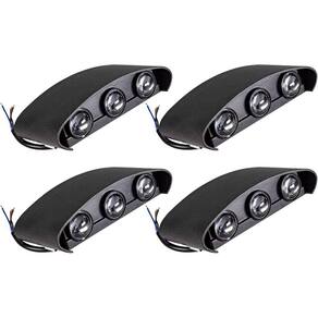 Grau de Proteção: IP54. Potência: 6W. Temperatura: 4.000K. Lúmens: 450. Voltagem Bivolt: 127-220V. Cor: Preta. Dimensões mm : 170 x 78 x 42. Contém 4 Unidades Neste Kit.