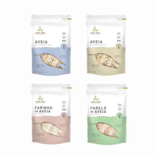 Kit com 4 tipos Aveia Estar Bem: Aveia Em Flocos, Aveia Prensada, Farinha de Aveia e Farelo de Aveia