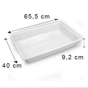 Kit com 4 Unidades - Bandeja Plástica em Polietileno PEAD sem Tampa Garanta praticidade e durabilidade com nossas bandejas plásticas de alta resistência. Fabricadas em polietileno de alta densidade PEAD , são ideais para uso em câmaras frias, açougues, mercados e na exposição de carnes e embutidos. Também são perfeitas para buffets, restaurantes, lanchonetes e até uso doméstico. Especificações: Medidas Externas: Altura: 9,2 cm Largura: 40 cm Comprimento: 60,5 cm Medidas Internas: Altura: 9 cm Largura: 34 cm Comprimento: 56 cm Peso: 920 g Marca: Não Informado Ean: 7904364200591