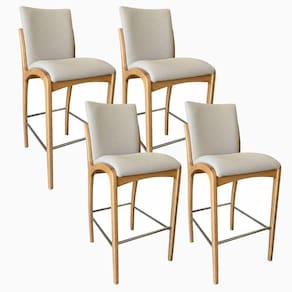Kit 4 Banqueta Aura Alta Madeira Maciça E Linho 25 Bege Design Moderno Conforto Com Apoio Para Pés Mobília Decor