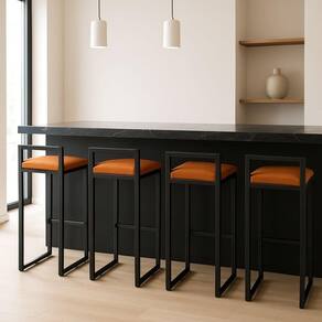 O assento em corino, além de elegante, oferece toque macio e fácil limpeza, tornando o dia a dia mais prático sem abrir mão do estilo. O design minimalista, com linhas retas e proporções equilibradas, se adapta perfeitamente a cozinhas gourmet, áreas de lazer e espaços corporativos modernos.