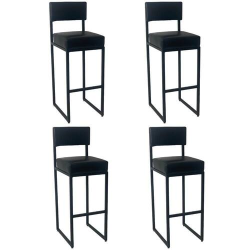 Quantidade de banquetas e bancos: 4 | Altura máxima: 95 | Unidade de Altura máxima: cm | Tipo de produto: Banqueta | Origem: | Estilo: Industrial | Material do assento: Espuma D-26 Corano | Materiais da estrutura: Aço carbono | Material do estofamento: Corano | Unidade de Profundidade: cm | Diâmetro: 0 | Unidade de Diâmetro: | Largura: 33 | Peso: | Unidade de Peso: kg | Peso máximo suportado: 150 | Unidade de Peso máximo suportado: kg | Quantidade de pés: 4 | Requer montagem: Não | Inclui almofada: | Com estofado: Sim | Com altura ajustável: | Com rotação de 360 graus: | Com rodas: | Com apoio de braços: Não | Com espaço de armazenamento: | Com apoio de pés: Sim | Com encosto: Sim | Com tinta epóxi: Sim | Quantidade de caixas de embalagem: 1 | Inclui manual de montagem: | Profundidade: 34 | É dobrável: