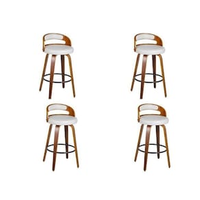 Com design contemporâneo, a banqueta Roma traz elegância e funcionalidade para sua casa. Os detalhes em madeira trazem conforto e personalidade para qualquer ambiente. O revestimento em PU facilita o uso no dia a dia e o apoio de pés garante o conforto das suas visitas. Altura do Conjunto: 89 cm Ambiente: null Ambiente Principal: Sala de Jantar Cor: Branco/Marrom Informação Complementar: 4x Banqueta para Cozinha Alta Giratória Madeira Roma Branco Largura: 44 cm Altura: 89 cm Peso: 6,7 kg Profundidade: 46 cm Necessita Montagem: Sim