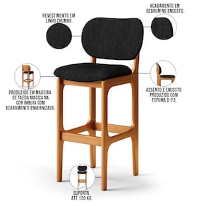 Amplamente sofisticado, o Kit 4 Banquetas Alta Bar Cozinha Sala Jantar Fixa Betta L02 Imbuia Linho Chumbo - Lyam Decor irá agregar ainda mais valor em sua decoração!! Sendo capaz de compor muito bem o ambiente, é produzido com materiais de excelente qualidade, a resistente estrutura em madeira de Taeda, na cor imbuia, conta com apoio para os pés (que garante maior segurança), além do assento e encosto estofados super confortáveis e convidativos, que são revestidos em tecido Linho, extremamente elegante.