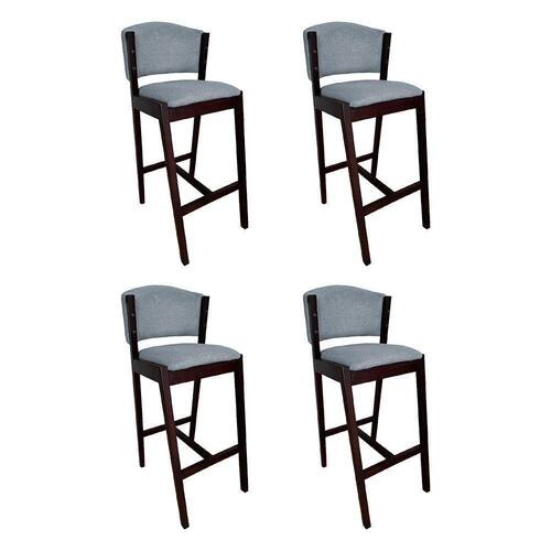 AS IMAGENS SÃO MERAMENTE ILUSTRATIVAS E PODEM SOFRER VARIAÇÕES DE COR E PEQUENOS DETALHES DE ACORDO COM O SEU MONITOR, ILUMINAÇÃO DO AMBIENTE E ATÉ MESMO A SUA PERCEPÇÃO VISUAL.Kit 4 Banquetas Alta de Madeira MaciÃa Castanho Premium Ana com Encosto Linho Cinza
