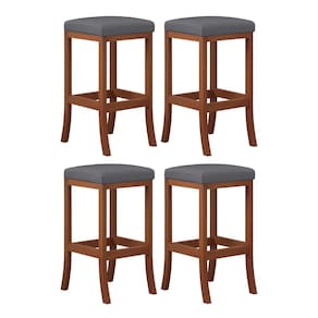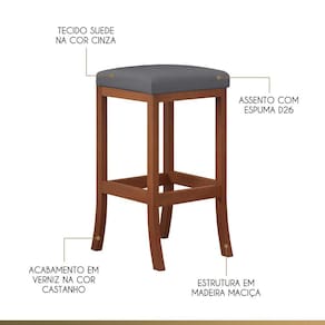 Kit 4 Banquetas Alta Estofada para Bancada Barcelona Madeira Castanho Suede CCS - Cinza