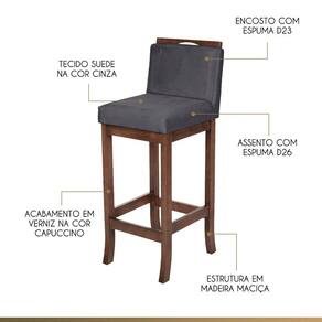 O Kit de Banquetas Alta Estofada Turim é um móvel versátil que vai deixar seu ambiente cheio de estilo. Possui um design atual com cores sobreas que pode ser aplicada em diversas composições e decorações. Por causa da sua versatilidade consegue ser utilizada em diferentes ambientes como bancadas altas, espaços gourmet, salão de festas, bares, cantinho do churrasco ou onde você precisar. Seu assento é preenchido com espuma D26, o encosto com espuma D23 e o revestimento é com tecido suede que proporciona conforto e elegância. A Banqueta Turim é produzida com materiais de excelente qualidade, garantindo sua durabilidade e vida útil. Móveis sofisticados e com alta qualidade, só na CCS Interiores.