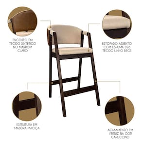 Transforme seu ambiente com a elegância e conforto da Banqueta Ravena, uma peça que alia sofisticação e qualidade. Ideal para compor cozinhas, bancadas e áreas de convivência, a Banqueta Ravena é um destaque que une funcionalidade e design. A Banqueta Ravena é a escolha perfeita para quem busca um mobiliário de alta qualidade, com um design clássico que agrega valor e conforto ao ambiente. Sua construção robusta em madeira maciça, aliada ao conforto das espumas e ao toque sofisticado do Tecido Material Sintético, fazem desta banqueta uma peça indispensável para composições modernas e elegantes.CARACTERÍSTICAS TÉCNICAS:Produzido em Madeira Maciça;Acabamento Verniz na Cor Capuccino;Assento com Espuma D26;Encosto com Espuma D23;Revestido em Tecido Linho Bege e Material Sintético na Cor Marrom Claro.*BANQUETA ENTREGUE MONTADA.?INFORMAÇÕES TÉCNICAS:Altura Total: 105 CmAltura do Encosto: 31 CmAltura até o Assento: 71 CmAltura até o Braço: 91 CmAltura do Chão até o Apoio dos Pés: 26 CmLargura Total: 50 CmLargura do Assento: 45 CmProfundidade do Assento: 41 CmProfundidade dos Pés: 51 CmPeso: 8 Kg?INFORMAÇÕES ADICIONAIS:ATENÇÃO: Móvel produzido em madeira maciça natural podendo ocorrer mudança no tom da madeira conforme o produto;*Conferir se o produto está de acordo com o que comprou, produto danificado não será aceito troca;**As imagens ambientadas são meramente ilustrativas e podem apresentar itens que não compõe o produto. As cores do produto podem variar de acordo com o monitor, a iluminação do ambiente ou sua percepção visual;***Limpeza deve ser feita com pano macio e seco ou levemente umedecido com água e sabão neutro. Não devem ser utilizados produtos abrasivos;Garantia para defeitos de fabricação conforme Código de Defesa do Consumidor. Marca: CCS Interiores