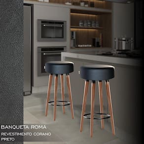 Kit 4 Banquetas Alta Pés Palito Roma Preto 70cm