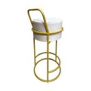 A banqueta alta redonda possui assento confortável e elegante, com base de ferro resistente que garante durabilidade. Ideal para cozinhas, bares ou áreas gourmet, combina estilo e funcionalidade.