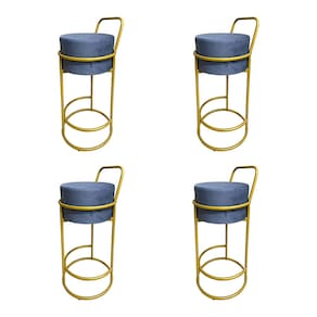 Kit 4 Banquetas Alta Redonda Base Dourada Veludo - Cinza