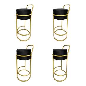 AS IMAGENS SÃO MERAMENTE ILUSTRATIVAS E PODEM SOFRER VARIAÇÕES DE COR E PEQUENOS DETALHES DE ACORDO COM O SEU MONITOR, ILUMINAÇÃO DO AMBIENTE E ATÉ MESMO A SUA PERCEPÇÃO 4 Banquetas Alta Redonda Base Dourada Veludo Preto