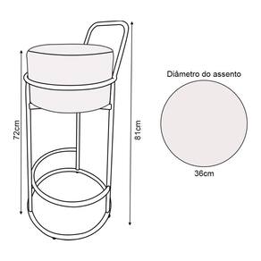 A banqueta alta redonda possui assento confortável e elegante, com base de ferro resistente que garante durabilidade. Ideal para cozinhas, bares ou áreas gourmet, combina estilo e funcionalidade.