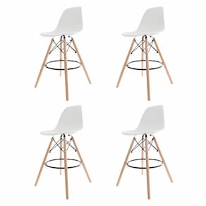 Kit 4 Banquetas Altas Com Encosto Alto Para Cozinha Americana Bar Bancada Balcão Ilha Area Gourmet Fixa Charles Eames Eiffel Base Madeira