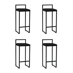 Kit 4 Banquetas Altas Industriais Em Aço Dori Preto Assento Suede Preto - Cor: Preto
