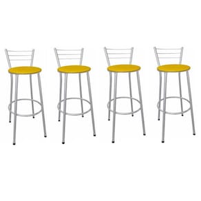 Banqueta Alta Itália Prata com Assento Amarelo Fortmix Seja para acompanhar um café rápido no início do dia ou aquela confraternização especial com os amigos, a Banqueta Alta com Encosto será uma grande aliada na composição do seu espaço. Modelo alta, ela é ideal para acompanhar bancadas e balcões, seja na sala de jantar, espaço de churrasqueira ou até mesmo em seu estabelecimento comercial. Com design simples que conta com cor sóbria, a peça embeleza o seu espaço ao mesmo tempo que garante a comodidade ideal, afinal, o assento preenchido em espuma recebe superbem o corpo além do suporte para os pés. Produto que faz toda diferença no seu ambiente. Características da Banqueta Alta com Encosto Cor da Estrutura: Prata Cor do Assento: Amarelo Capacidade (kg): 120 kg Material da Estrutura: Tubos de Aço carbono (7/8 de polegada) Material do Assento: MDF e Espuma Encosto: Arame Dimensões da Banqueta Alta com Encosto Altura do assento até o chão (cm): 72 Cm Altura do encosto até o chão (cm): 95 Cm Diâmetro do assento: 32 Cm Conteúdo da Embalagem: 04 Banqueta Alta com Encosto Dicas Não deixe suas banquetas expostas ao sol por mais de 4 horas. Não use produtos abrasivos na limpeza de suas Banquetas. Usar um pano umedecido na limpeza da Banqueta e, logo em seguida, seque-as com um pano seco. A tonalidade da cor pode variar de acordo com o lote do fabricante e/ou as configurações de seu monitor. *Imagens meramente ilustrativas Garantia 3 Meses contra defeito de fabricação