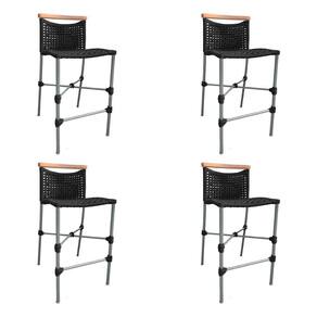 IMAGENS MERAMENTE ILUSTRATIVAS REALIZADO EDIÇÃO, PODENDO HAVER UMA PEQUENA VARIAÇÃO DE COR DEPENDENDO DE CADA TELA OU MONITOR.Kit 4 Banquetas Anne em Corda NÃutica Base em AlumÃnio Cinza com Detalhe em Madeira Preta