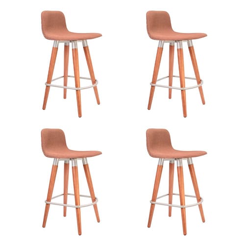 Kit 4 Banquetas Baixas Linea Aço Champanhe para Cozinha Balcao Gourmet Design - Terracota Assento - Laranja