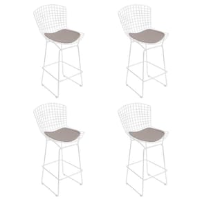 AS IMAGENS SÃO MERAMENTE ILUSTRATIVAS E PODEM SOFRER VARIAÇÕES DE COR E PEQUENOS DETALHES DE ACORDO COM O SEU MONITOR, ILUMINAÇÃO DO AMBIENTE E ATÉ MESMO A SUA PERCEPÇÃO VISUAL.Kit 4 Banquetas Bistrà Bertoia Branca D70 com Assento Bege