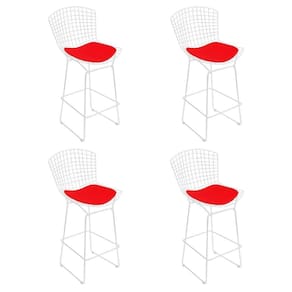 AS IMAGENS SÃO MERAMENTE ILUSTRATIVAS E PODEM SOFRER VARIAÇÕES DE COR E PEQUENOS DETALHES DE ACORDO COM O SEU MONITOR, ILUMINAÇÃO DO AMBIENTE E ATÉ MESMO A SUA PERCEPÇÃO VISUAL.Kit 4 Banquetas Bistrà Bertoia Branca D70 com Assento Vermelho