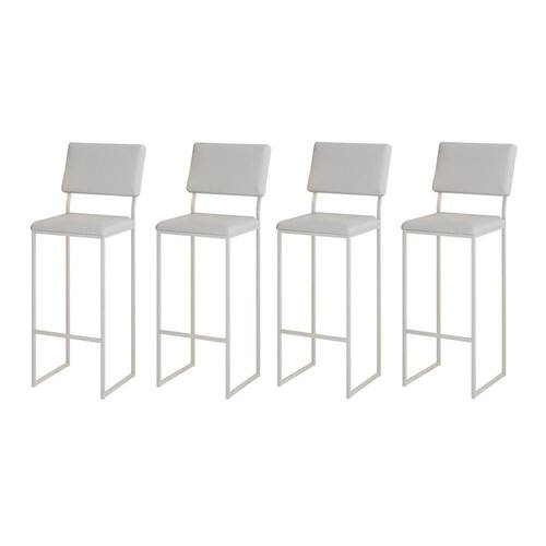 Kit 4 Banquetas Com Encosto Industrial E Moderna Nina Branco E Corino Branco